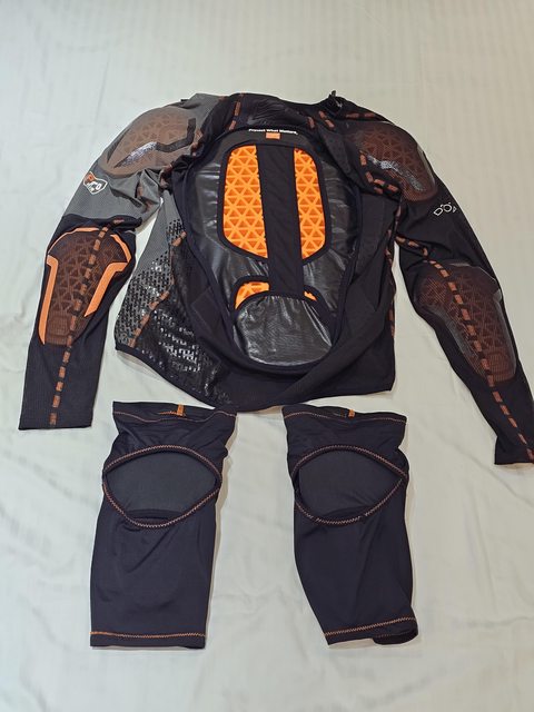 這張應該可以從側面看得出來,雖然整件除了護胸都是CE level 2的護具,背部肩膀不太
