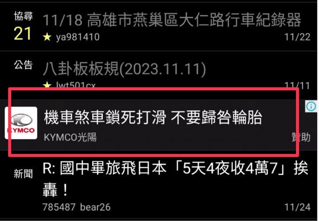 推 hangtenboy: 光陽真的很毒瘤 111.71.6.138 11/24 10:06