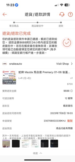 → finasoul : 蝦皮可以直接退費07/09 06:40