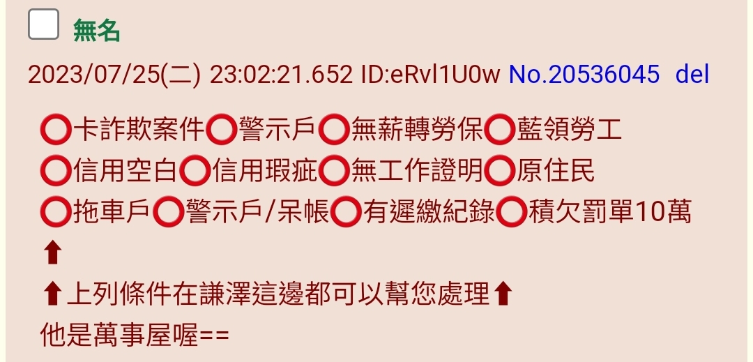 推 a36464 : 那個貼圖的謙澤貸款應該是地下錢莊,兼差賣二手車, 07/30 10:39