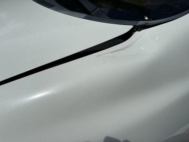 車子開了八年,一直保護的很好,開車也很小心,無奈前幾天停在外面,引擎蓋邊邊被重物打到凹一個洞,沒有熄火時的行車記錄器,也不知道兇手是誰,只能摸摸鼻子修車,唯一值得欣慰的是漆都沒掉,如圖 https://i.imgur.com/AlAJr0m.jpg