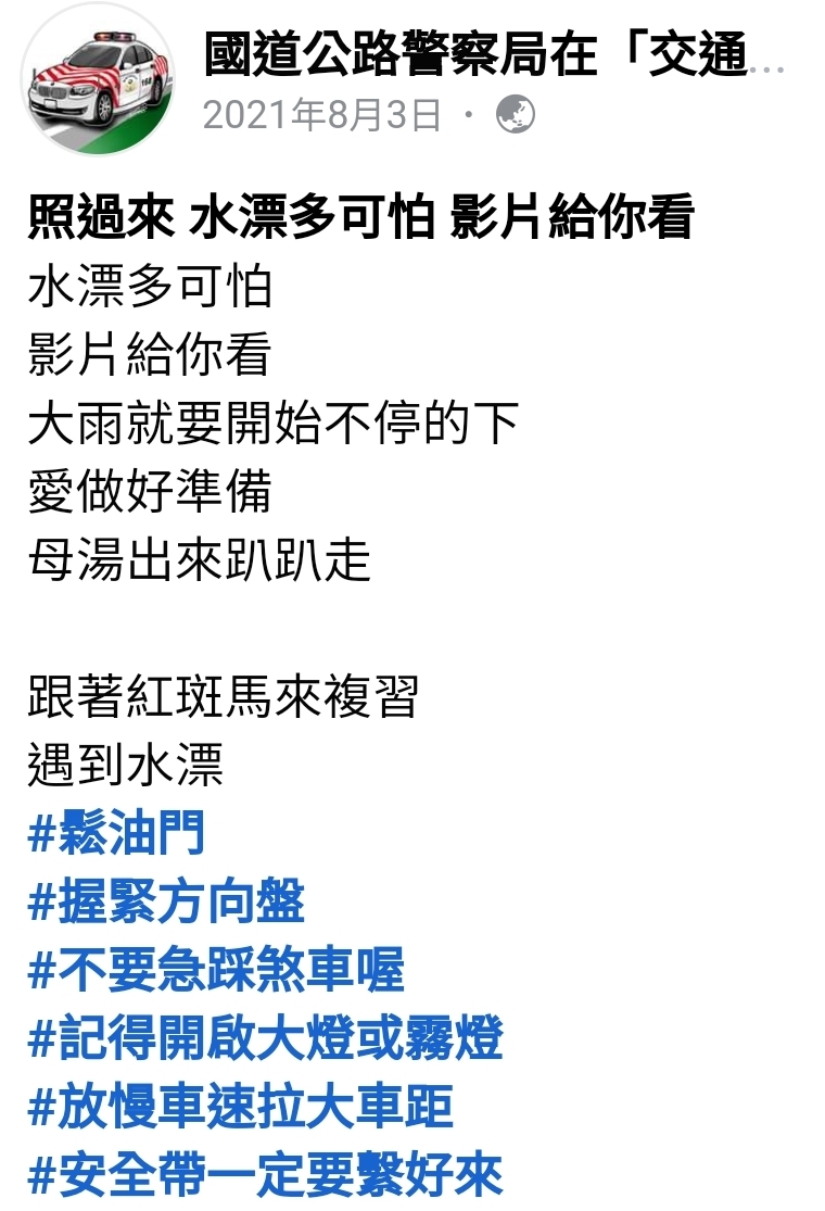 推 dallas0104 : 之前遇到水漂時,放油門不要踩煞車,方向盤抓緊,好 09/07 19:59