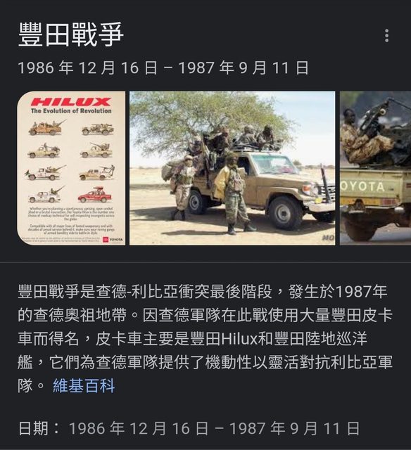 Toyota Land Cruiser 是第三世界值到今日ISIS持續使用的軍用車款。