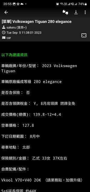 → kevinchuang : 有打電話詢問 車子不是每一款任何時間都有。 09/27 06:57
