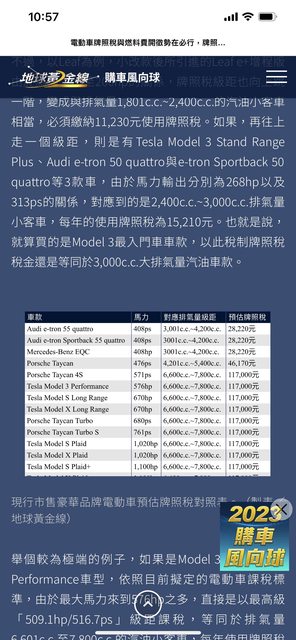 → hanchueh : 沒有道理同馬力的車繳稅 油車比電車便宜 10/05 21:16