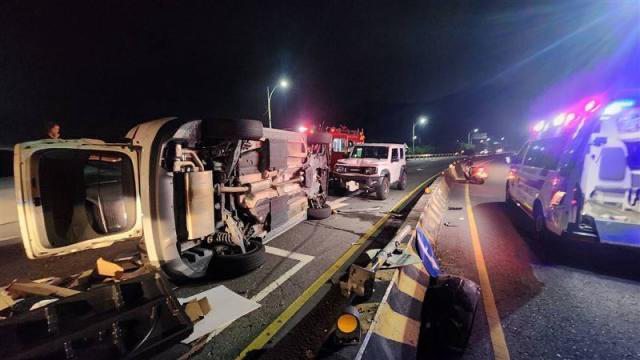 歲)駕駛的汽車,剛出隧道就撞上中央翻隔島後側翻,還因此撞上對向停等紅燈的2輛車,