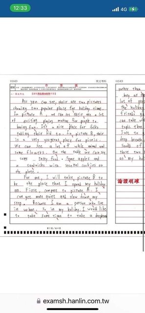 聽說是在學測模擬考拿下15分的英文作文(滿分20)