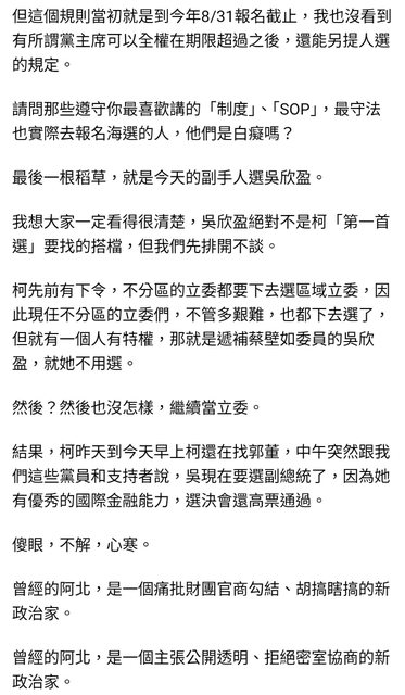 推 wingthink: 好了啦 深綠柯粉 沒人在乎你好嗎? 112.78.90.186 11/25 11:51