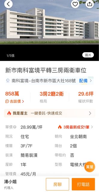 推 lucky466: 3房平車近南科只要8xx?好便宜 11/10 20:20