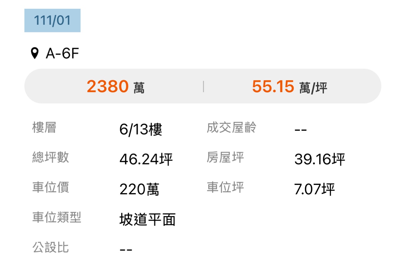 本物件兩年內上一筆實價登錄:無