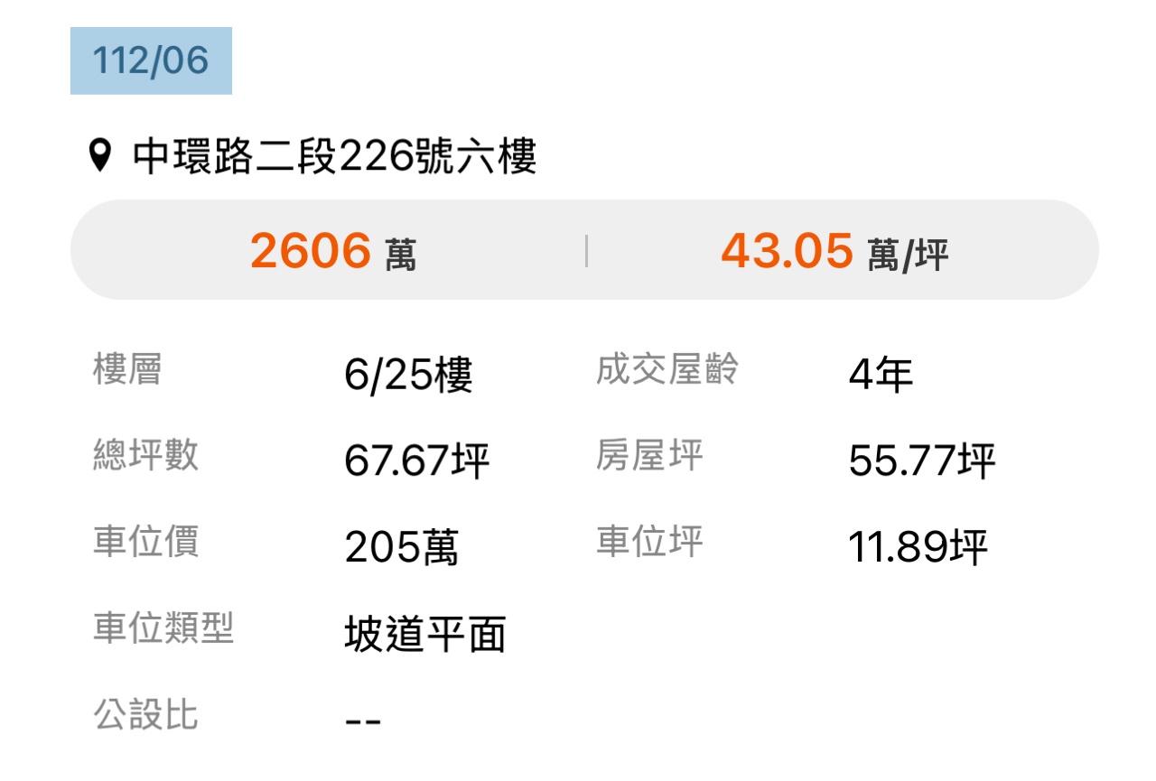 本物件兩年內上一筆實價登錄: