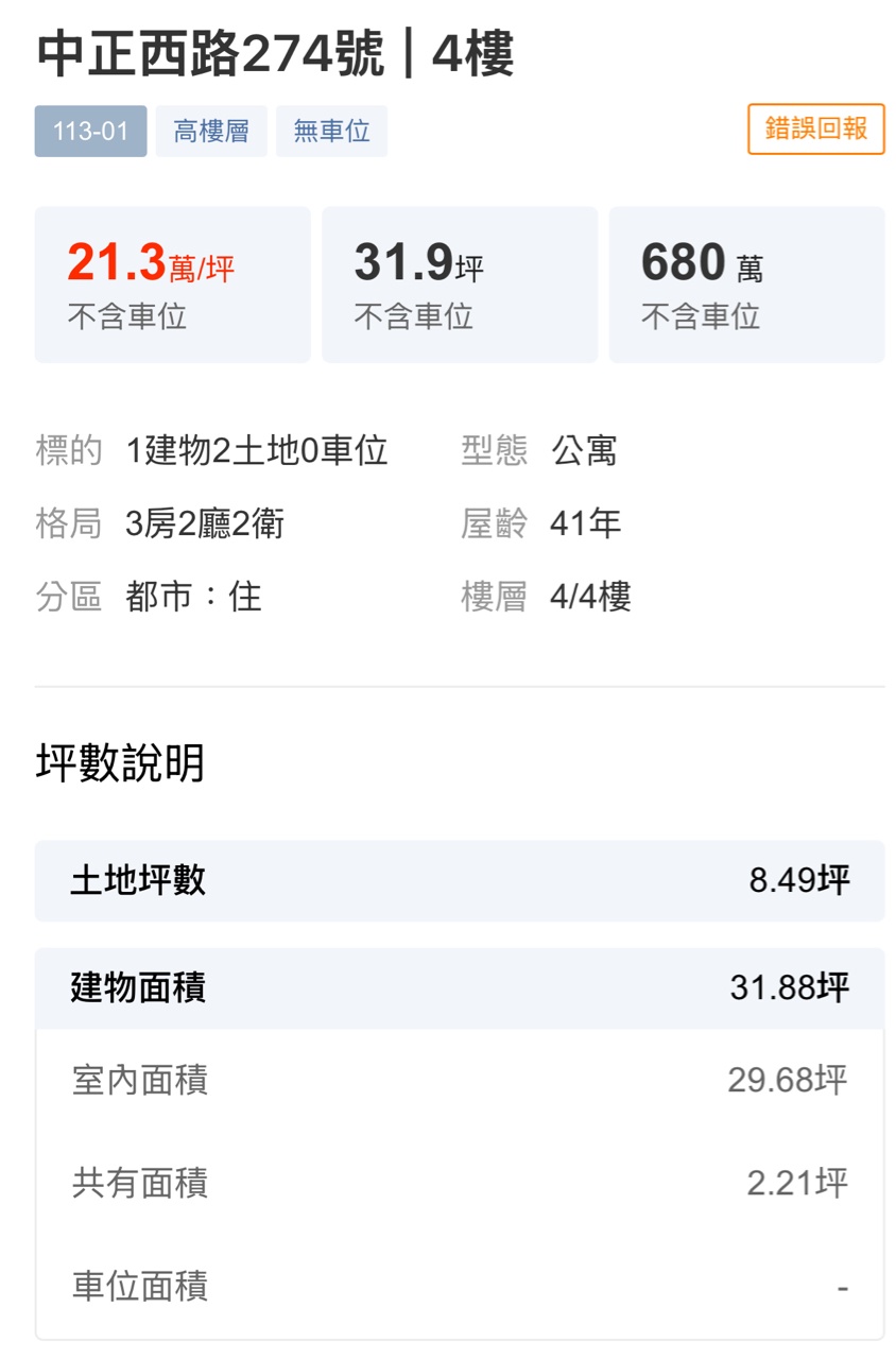推 yeng1217: 中正西的老建物還沒電梯 那個買680大概以為賺到吧 04/13 11:04