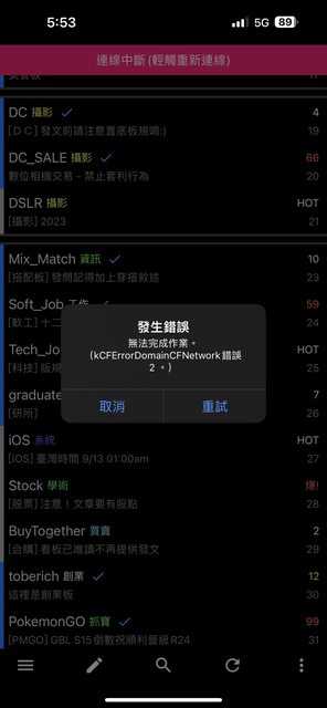 以上那些APP,都會跳出訊息說錯誤