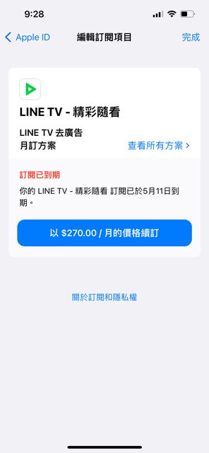 今天要打開手機訂閱頁面 發現沒辦法看到其他App訂閱 只能看到LineTV 這個畫面
