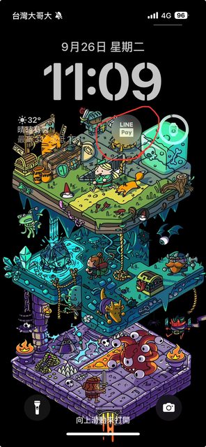 鎖定畫面有設定Line Pay的小工具,