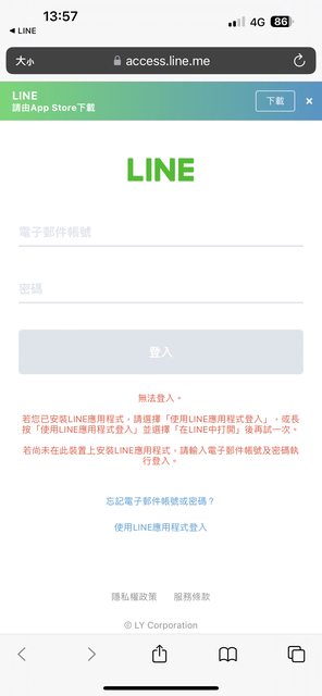 按「使用line 應用程式登入」也沒反應
