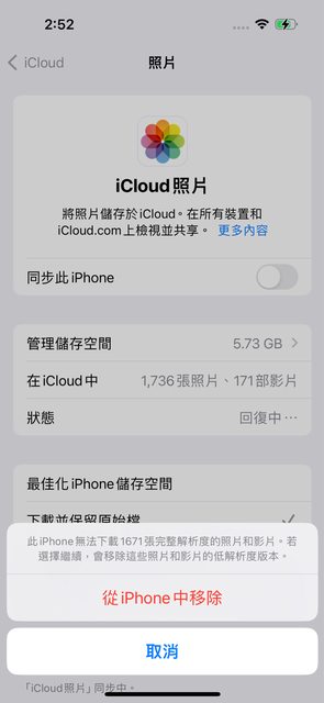 → alrin891202 : 目前iPhone 相簿裡顯示還有600多張照片在下載,請10/05 16:36