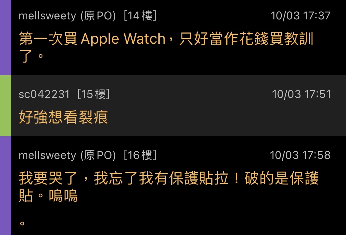 推 zxc654033 : 原po只是保護貼破掉,後續跑去加保 10/13 10:02