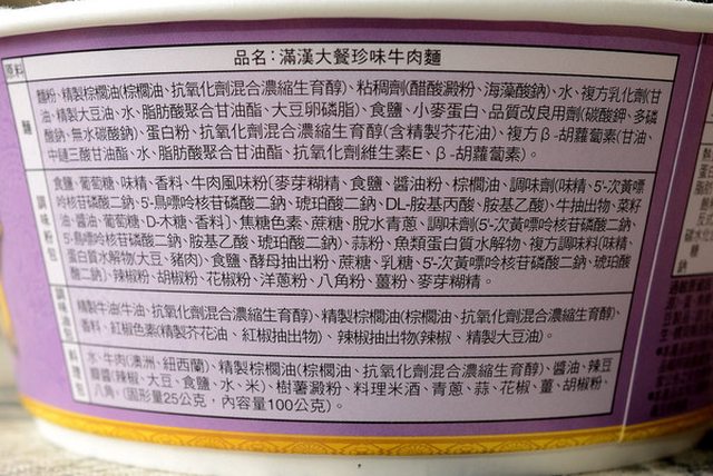 一般牛肉麵店的成分表