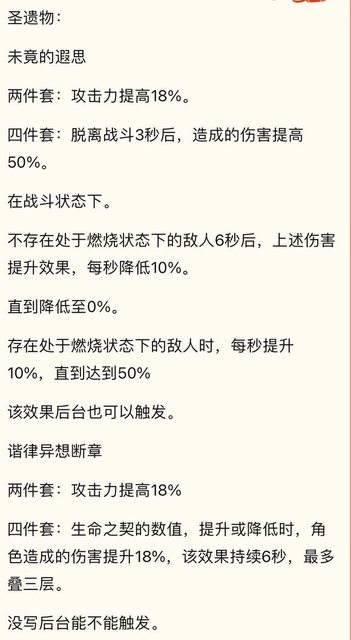 八重堂 應該是準的 火c 究竟如何 阿蕾奇諾(Arlecchino)技能組 基礎攻擊:342 基礎生命: 13103 基礎防禦:765 突破屬性:暴擊傷害38.4% 普通攻擊: 阿蕾奇諾具有的生命之契,大於或等於生命上限30%時,獲得40%火傷加成。 並將她的A,重,下墜,轉換為無法被覆蓋的火傷。 在陰翳禮贊狀態下,阿蕾奇諾的普攻將轉為紅死之宴。 命中敵人時,將提升本次攻擊造成的傷害。 提升值相當於,阿蕾奇諾攻擊力x當前生命之契百分比的一定比例。 並消耗當前5.5%的生命之契。每0.05秒,最多因此消耗一次生命之契。 10級倍率: 紅死之宴提升比例:238% 一段93.2 二段102.2 三段128.2 四段70.4+70.4 五段140 六段167.7 重擊256.4 下墜擦傷126.4 低空/高空下墜252.7/315.6 元素戰技: 發動遣令厄月血火,對附近的多名敵人,造成火元素傷害。並對其中一名敵人突進切斬,造 成火元素 範圍傷害。上述攻擊命中敵人時,對其施加血償勒令。 突進切斬完成後,清除阿蕾奇諾具有的生 命之契,並進行灰燼滋養。為阿蕾奇諾回復生命 值,回復量基於清除的生命之契的100%。 血償勒令: 持續30秒,每3秒,對敵人造成一次火傷,至多造成三次傷害。 阿蕾奇諾進行重擊時,將回收並清除周圍敵人身上的血償勒令。每回收一枚血償勒令,為阿 蕾奇諾施加生命上限20%的生命之契。釋放元素戰技後的20秒內,至多通過這種方式賦予 80%的生命之契。 10級倍率: 尖刺:26.7% 切斬:240.4% 血:38.2% 冷卻15秒。 元素爆發: 能量60,冷卻15。 振舞厄月血火之翼,為阿蕾奇諾賦予生命上限15%的生命之契,並造成火元素範圍傷害。 10級倍率:666.7% 天賦一:擊敗具有血償勒令的敵人時,將直接為阿蕾奇諾賦予生命上限70%的生命之契。此 外,血償勒令存在等階區分。依據等階的區別,回收血償勒令時,將為阿蕾奇諾賦予的生命 之契不同。血償勒令初始為一階,每三秒提升一階,最多三階。回收一二三階的血償勒令 時,將分別賦予20%25%70%的生命之契。 天賦二:基於阿蕾奇諾的攻擊力,超過1000的部分,每100給1%全元素抗性和物理抗性。最多 20% 生活天賦: 在隊伍+戰鬥中,阿蕾奇諾只能承受自己E的回復,其他都不行。非戰鬥可以回。 命座: 1:普攻的紅死之宴命中時,有33%概率不消耗生命之契,轉而賦予生命上限5%的生命 之契。 2:施加血償勒令的初始等階提升至二階。阿蕾奇諾回收了階血償勒令時,將在前方 喚出厄 月血禍,造成基於阿蕾奇諾攻擊力 900%的範圍火傷,10秒最多觸發一次。 3:A+3 4:大招為阿蕾奇諾賦予的生命之契提升至生命上限的25%,並在命中被施加的血償勒令的敵 人時,使血償勒令的等階提升一 階。此外,成功回收血償勒令時,大招的冷卻縮短2秒,回復 15能量,10秒一次。 5:Q+3 6:E的突進切斬造成的傷害提高,提升值相當於阿蕾奇諾的攻擊力x當前生命之契百分比的 500%。 釋放E的20秒內,使阿蕾奇諾的普攻,大招的暴擊率提高10%,暴擊傷害提高70%,15秒至多觸 發一次。 專武: 赤月之形(精煉y) 674基礎攻擊,22.1%暴擊率。 重擊命中敵人時,賦予生命上限25%的生命 之契,14秒一次。 此外,裝備者具有生命之契時,造成的傷 害提升8%+4%×yo 若生命之契的數值,大於等於生命上限的 30% 造成的傷害,進一步提升12%+8%×yo 一圖流 https://i.imgur.com/Zhvk6Up.jpg