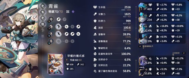 姬子:火屬性雙暴C 找暴率爆傷的詞條 和攻擊力。有1命的姬子擊破會加速 虛構強者