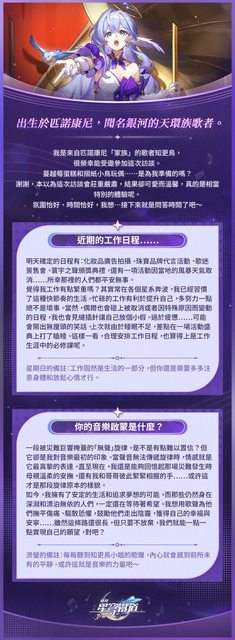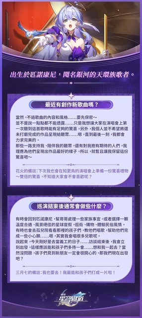 出生於匹諾康尼,聞名銀河的天環族歌者、舉止從容優雅的少女。