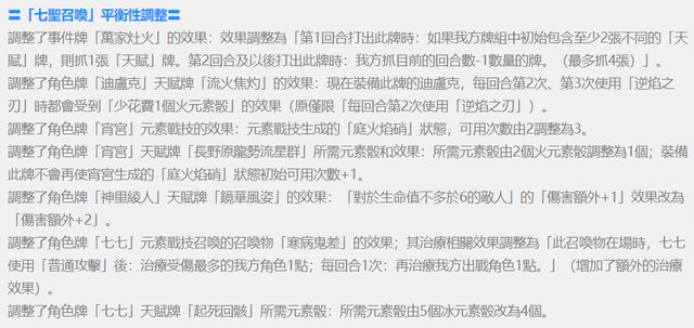 調整了角色牌「七七」元素戰技召喚的召喚物「寒病鬼差」的效果;其治療相關效果調整