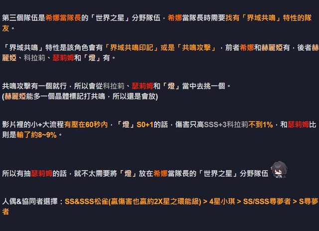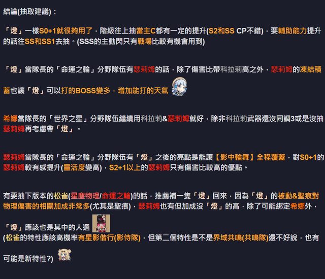 標題[崩壞] 7.5-「燈」隊伍流程&比較+抽取建議
