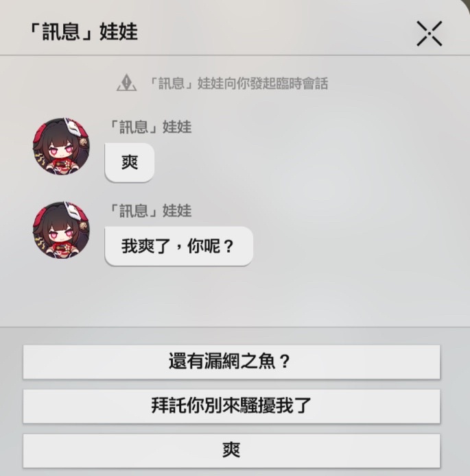 《崩壞:星穹鐵道》美夢謝幕預告:「塔塔洛夫向你致意」 「你還是個孩子的時候,也嘗試過投石入水,並樂在其中吧?」 「那有沒有想過,既然漣漪總會散去,我們到底是為了什麼才丟出石頭?」 「答案很簡單。只有投石者才清楚,丟下的石子會盪開怎樣的波瀾——而水面上的倒影,又 會因此扭曲出怎樣的快樂。」 https://i.imgur.com/Fwya77n.jpeg