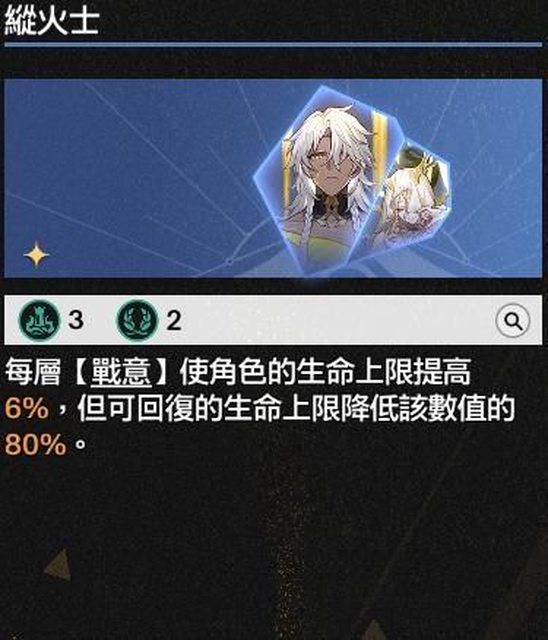 #縱火士增加血量上限,但角色回血無法達到其上限,故展開後天人不動眾、明澈琉璃身