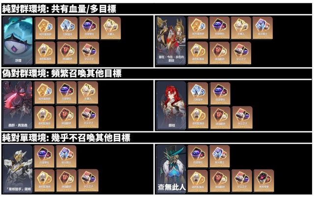 0. 本表適用性為主觀判斷,請依各帳號通關時能用的隊伍/祝福作為主要參考