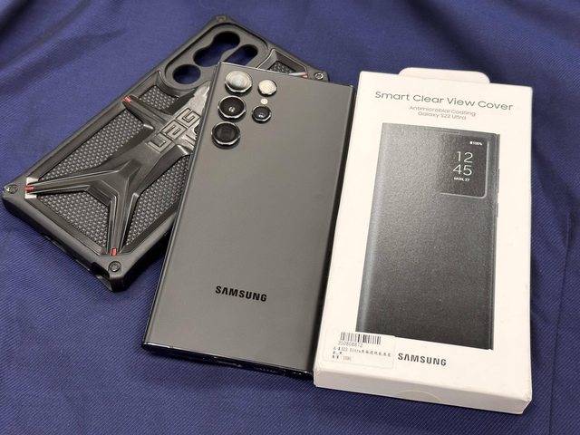 商品內容:手機一隻、全新未使用三星原廠快充頭一顆、全新三星S22U原廠透視感應皮套一個、UAG保護殼一個(如照片)