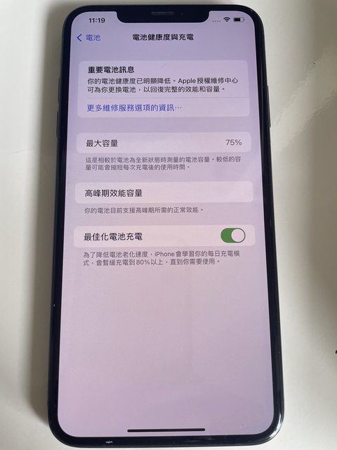 電池健康度75%