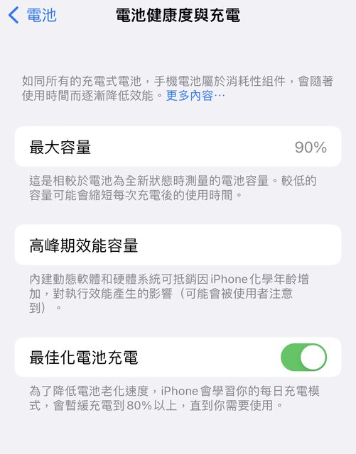 電池健康度90%。