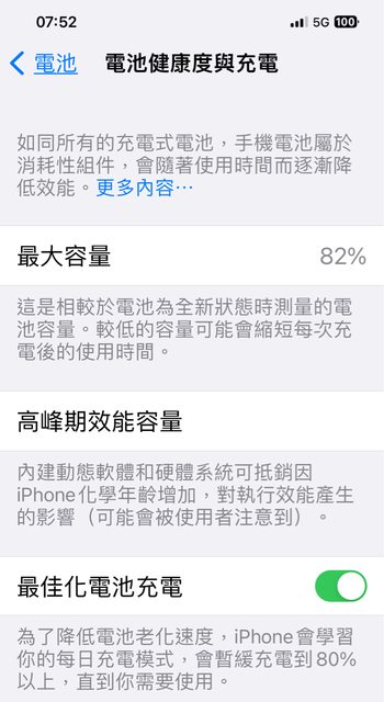 電池健康度:82%(沒有維修過)