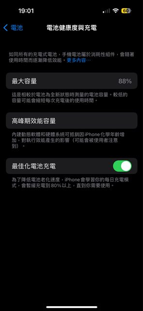 AOD長期關閉,電池健康度88%