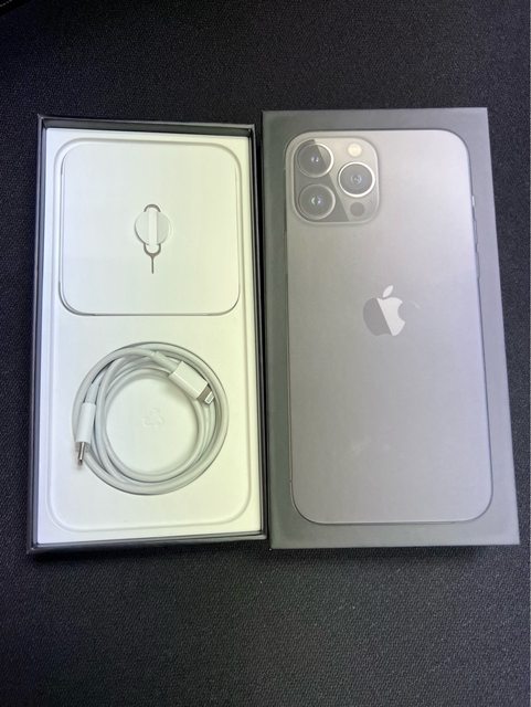 盒裝內含:IPhone 13 Pro Max 256G 石墨灰主機、原廠充電線、完整盒裝、玻璃貼