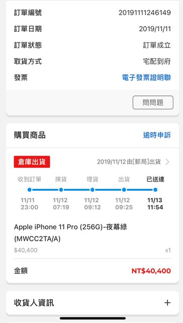 欲售物品:iPhone 11 Pro 256G夜幕綠 物品狀況:手機功能正常,外觀無明顯刮傷痕跡,電池健康度77% 購買來源:PChome24H 盒裝內含:原廠盒子、卡針、全新充電線跟耳機 購買日期:2019/11/11 保固日期:過保 購入價格:NT$40400 欲售價格:NT$10000 交易方式:需等本人移機完成面交、雙北板南線為最佳 實品圖片: