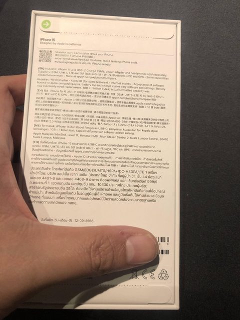 盒裝內含:iphon 15和USB-C充電線