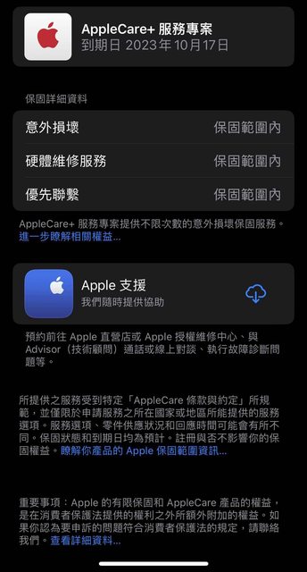 保固日期:Apple care+ 至 2023/10/17