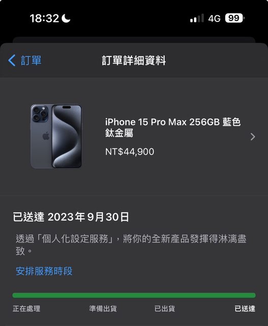 欲售物品:iPhone 15 Pro Max 256G 藍色鈦金屬
