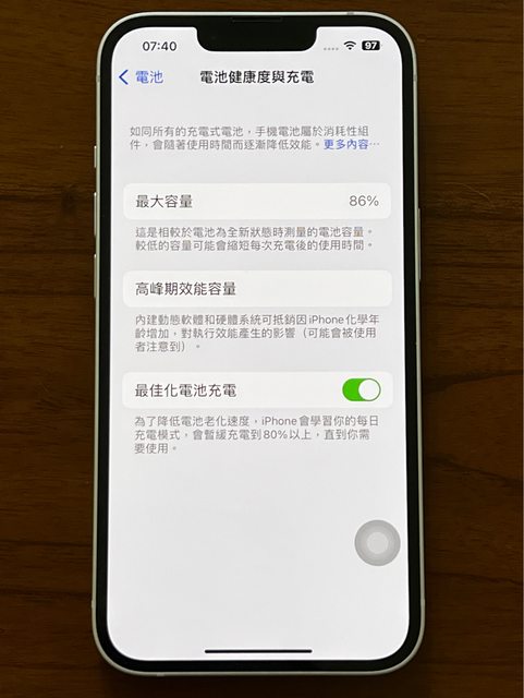 電池健康度86%