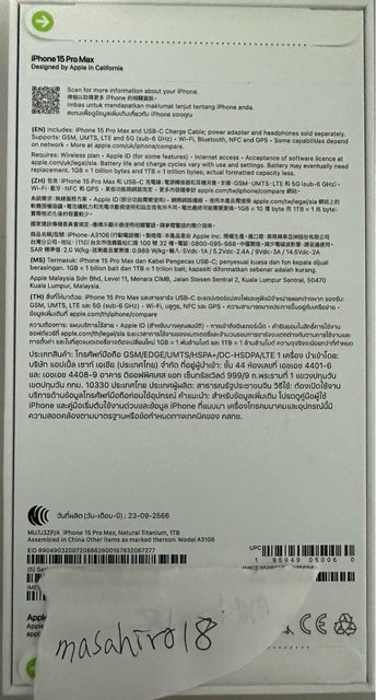 欲售物品:iPhone 15 Pro Max原鈦色 1TB