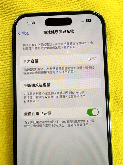 物品狀況:無維修紀錄、電池87%,有螢幕貼,手機殼