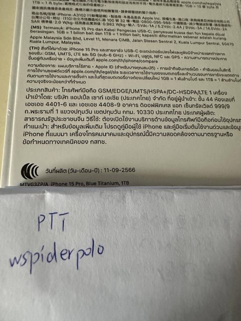 標題[賣/雙北/面交] iPhone 15 Pro 1TB 藍鈦色
