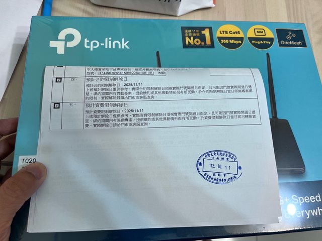 欲售物品:TP-Link Archer MR600 4g分享器