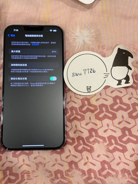 物品狀況:功能正常,電池健康度 87%,有貼螢幕保護貼,外觀良好