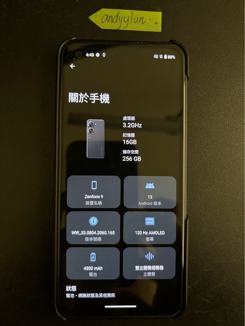 標題[賣/雙北/面交] Asus zenfone 9 16G/256G 黑