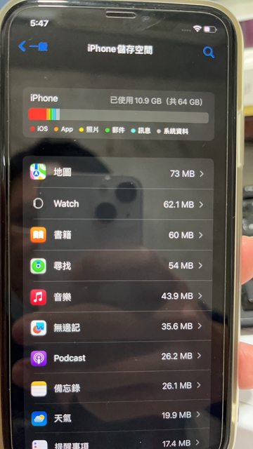 重置後系統使用容量:10.9G/64G