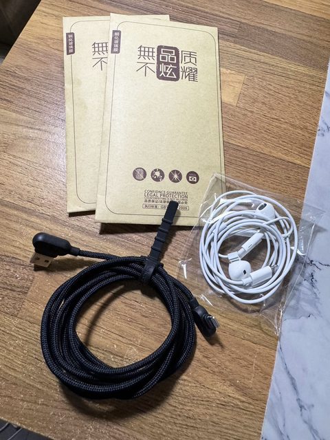 另外買的充電線和螢幕保護貼都附上